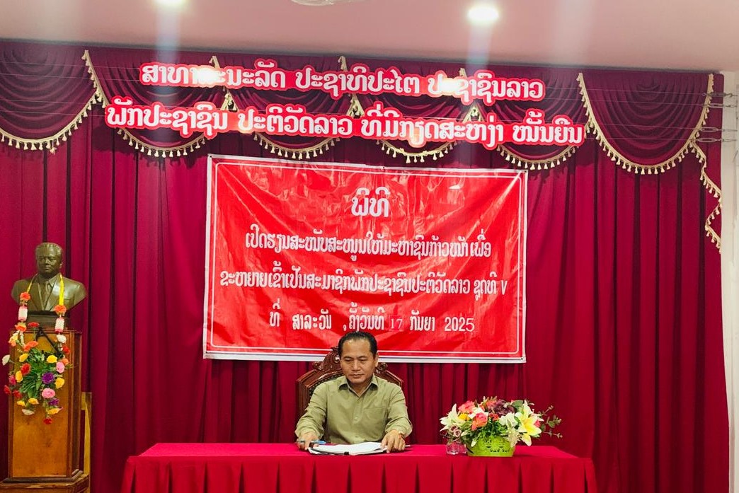 ໃນວັນທີ 17 ກັນຍາ 2025, ຄະນະໂຄສະນາອົບຮົມແຂວງສາລະວັນ ໄດ້ເປີດສະຫນັບສະຫນູນ ໃຫ້ແກ່ມະຫາຊົນກ້າວໜ້າ ຊຸດທີ V ປະຈໍາປີ 2025 ທີ່ຫ້ອງປະຊຸມ ຂອງຫ້ອງການ ຄະນະໂຄສະນາອົບຮົມແຂວງ ມີບັນດາມະຫາຊົນ ຜູ້ທີ່ມີຄວາມກ້າວຫນ້າ ເຂົ້າຮ່ວມຮຽນທັງໝົດ ຈໍານວນ 12 ສະຫາຍ, ຍິງ 7 ສະຫາຍ ມາຈາກ 4 ຄະນະພັກຮາກຖານຄື: ຄະນະພັກຮາກຖານພະແນກກະສິກໍາ ແລະ ສິ່ງແວດລ້ອມແຂວງ ມີ 6 ສະຫາຍ, ຍິງ 2 ສະຫາຍ, ຄະນະພັກຮາກຖານພະແນກການເງິນແຂວງ 1 ສະຫາຍ, ຍິງ 1 ສະຫາຍ, ຄະນະພັກຮາກຖານພະແນກໂຍທາທິການ ແລະ ຂົນສົ່ງແຂວງ 4 ສະຫາຍ, ຍິງ 3 ສະຫາຍ ແລະ ຄະນະພັກຮາກຖານທະນາຄານ ສາຂາແຂວງສາລະວັນ 1 ສະຫາຍ, ຍິງ 1 ສະຫາຍ; ໂດຍໃຫ້ກຽດເຜີຍແຜ່ເອກະສານ ອົບຮົມເປົ້າໝາຍຂະຫຍາຍເຂົ້າພັກປະຊາຊົນປະຕິວັດລາວ ຂອງສະຫາຍ ນາງ ໜູຄໍາ ສາຍສູນທອນ ຫົວໜ້າຂະແໜງອົບຮົມ ຄະນະໂຄສະນາອົບຮົມແຂວງ.