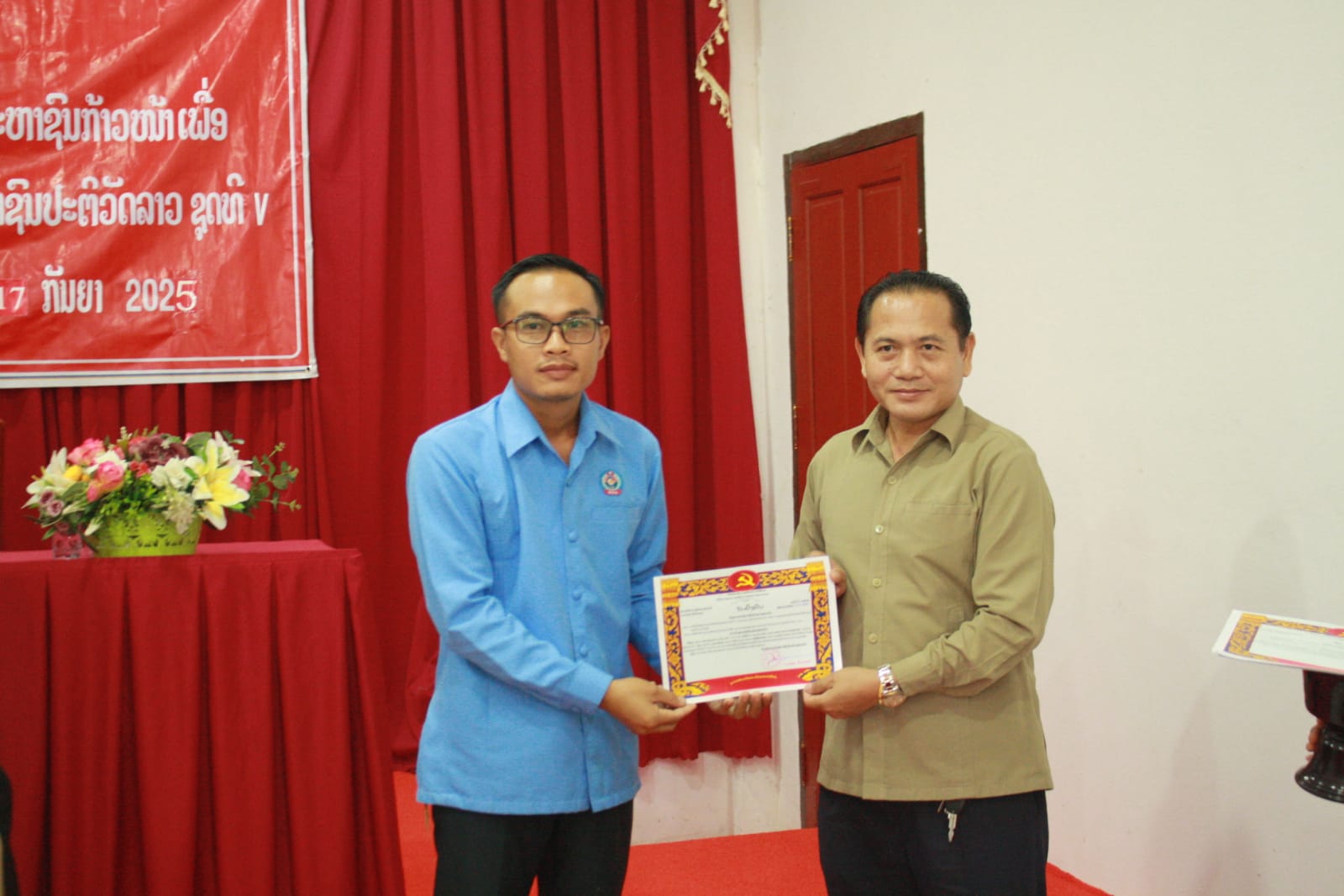 ພິທີດັ່ງກ່າວ, ຍັງໄດ້ມອບ-ຮັບໃບຢັ້ງຢືນ ໃຫ້ແກ່ມະຫາຊົນທີ່ມີຄວາມຫ້າວໜ້າ ທີ່ເຂົ້າຮ່ວມຮຽນ ເຊິ່ງເປັນກຽດມອບຂອງສະຫາຍ ຈັນທະວອນ ສີຫາຈັກ ຕື່ມອີກ.