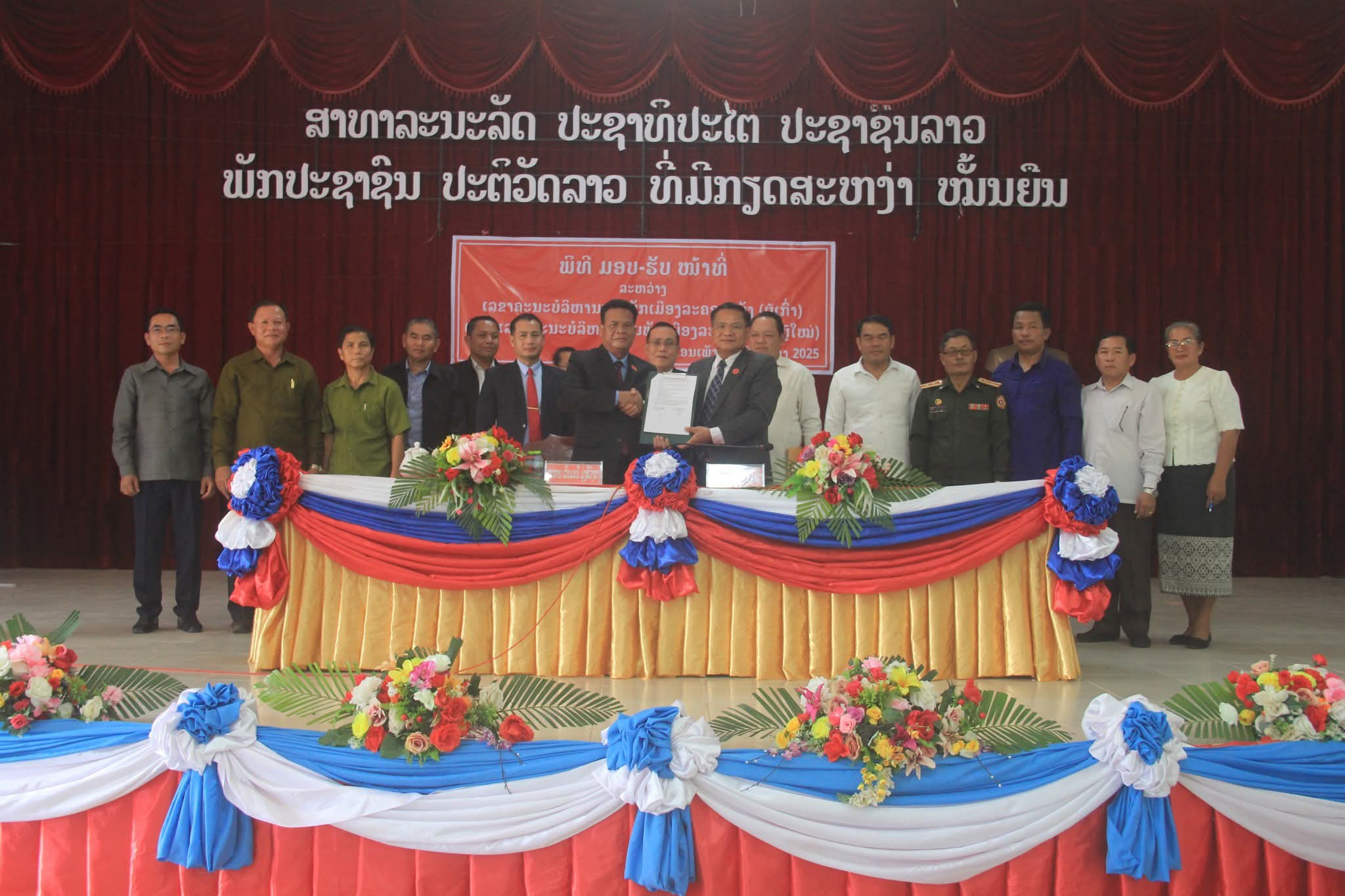 ມອບ-ຮັບໜ້າທີ່ ລະຫວ່າງ ເລຂາຄະນະບໍລິຫານງານພັກເມືອງລະຄອນເພັງ ຜູ້ເກົ່າ ແລະ ຜູ້ໃໝ່