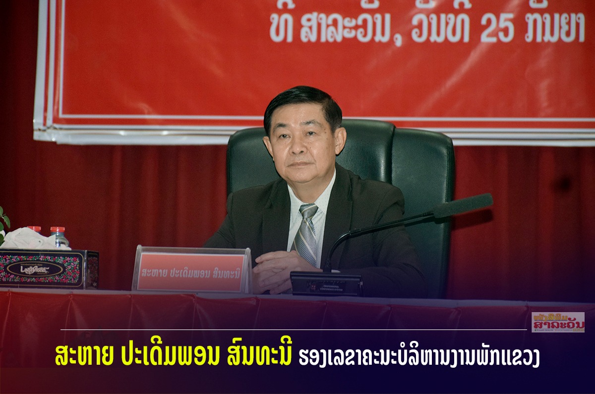 ໃນໂອກາດນີ້, ສະຫາຍ ປະເດີມພອນ ສົນທະນີ ກໍໄດ້ໃຫ້ກຽດມອບມະຕິຕົກລົງ ພ້ອມທັງເປັນສັກຂິພິຍານໃນການເຊັນບົດບັນທຶກ ມອບ-ຮັບ ໜ້າທີ່ ຫົວໜ້າຄະນະຈັດຕັ້ງແຂວງ ລະຫວ່າງ ສະຫາຍ ແຫວນເພັດ ລັດດາວົງ (ຜູ້ເກົ່າ) ກັບສະຫາຍ ຈັນສີລອນ ສີສົມບູນ (ຜູ້ໃໝ່), ມອບ-ຮັບ ໜ້າທີ່ຫົວໜ້າຄະນະໂຄສະນາອົບຮົມແຂວງສາລະວັນ ລະຫວ່າງ ສະຫາຍ ຈັນສະໝອນ ພົມມະແສງ (ຜູ້ເກົ່າ) ກັບ ສະຫາຍ ມະໄລວອນ ສີປະເສີດ (ຜູ້ໃໝ່).