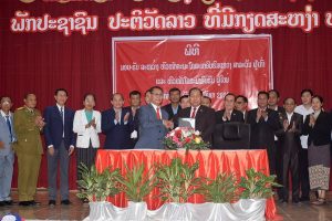 ມອບ-ຮັບໜ້າທີ່ ລະຫວ່າງ ເລຂາຄະນະບໍລິຫານງານພັກເມືອງລະຄອນເພັງ ຜູ້ເກົ່າ ແລະ ຜູ້ໃໝ່